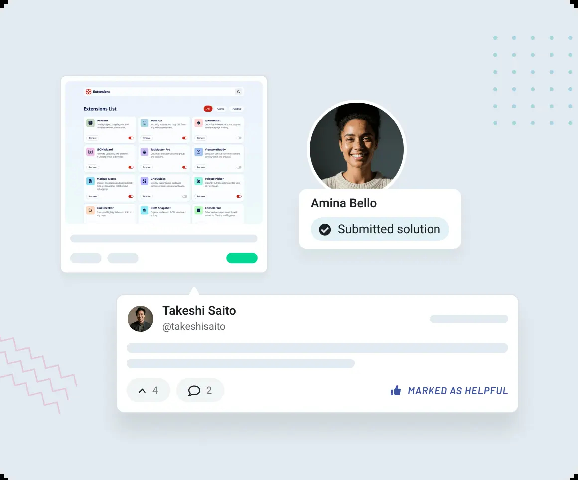 Connect with peers for code reviews, career advice, and friendship. Beat imposter syndrome alongside developers who understand your journey, guided by mentors who've walked this path.