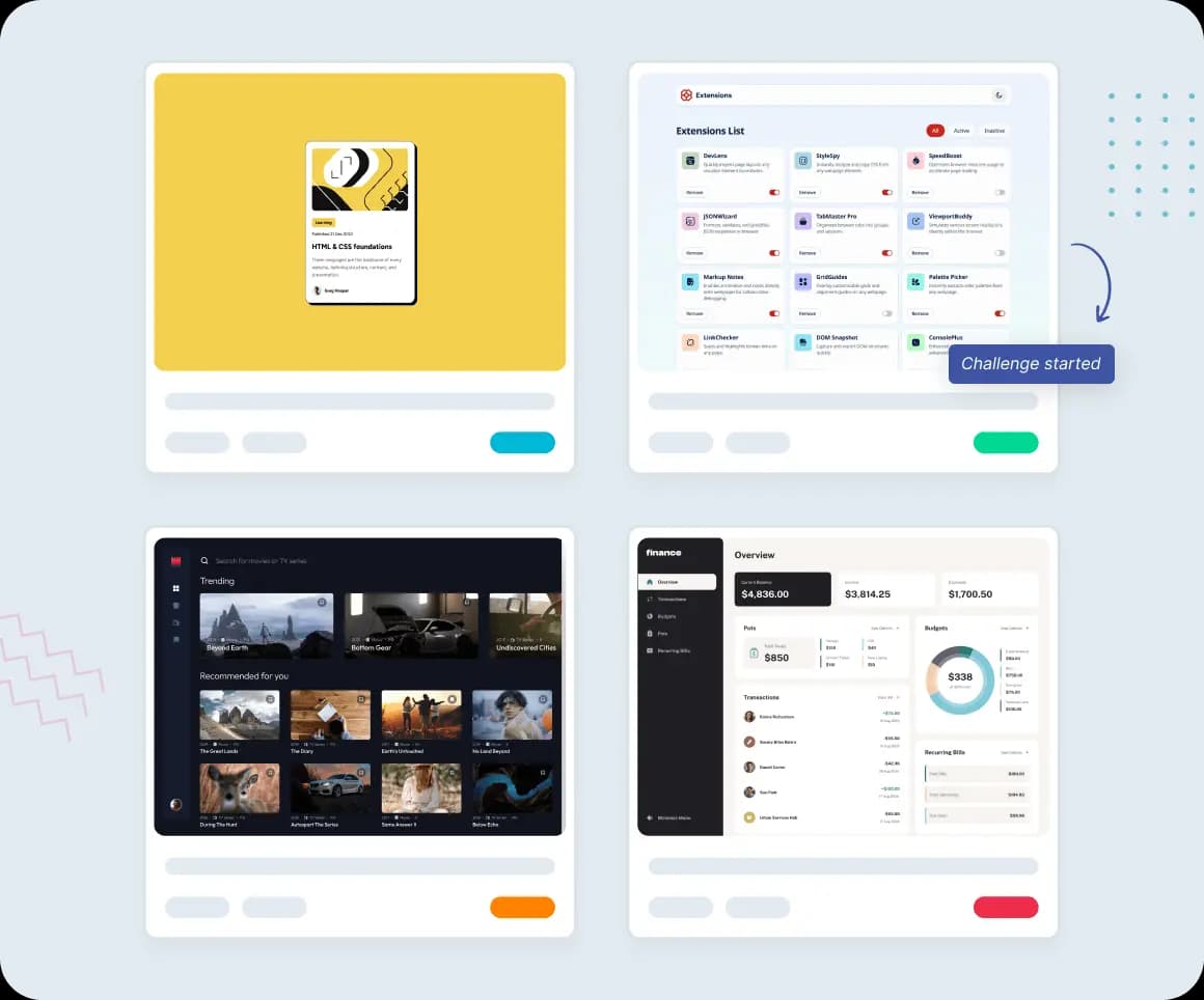 Frontend Mentor provides professional design-to-code challenges that mirror real-world development work. Join 1,135,414 developers building portfolio projects that impress employers.