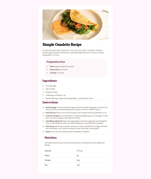 Submitted about 1 year agoA solution to the Recipe page challenge