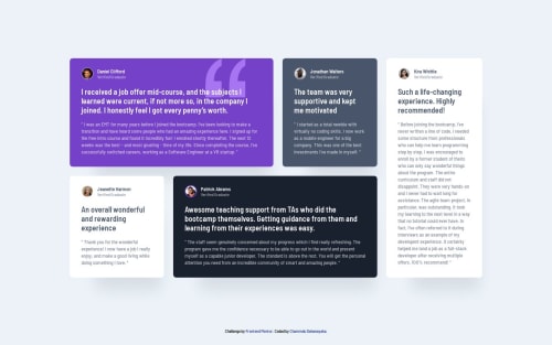 Submitted almost 2 years agoA solution to the Testimonials grid section challenge