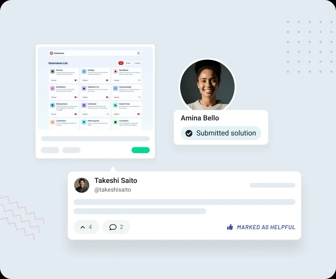 Connect with peers for code reviews, career advice, and friendship. Beat imposter syndrome alongside developers who understand your journey, guided by mentors who've walked this path.