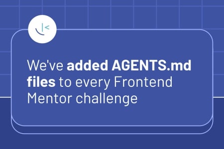 Every Frontend Mentor challenge now includes AGENTS.md files that turn AI coding tools into difficulty-matched learning partners. Here's what we did and why.