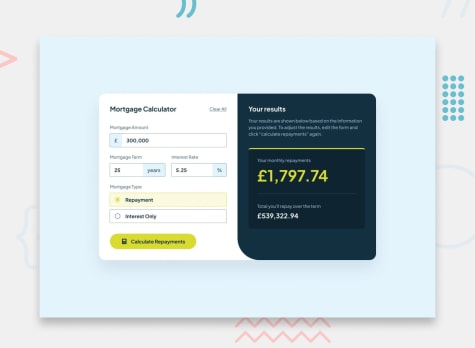 This mortgage calculator is an excellent project for practicing working with forms, client-side validation, and updating the DOM. Remember to focus on accessibility, too!