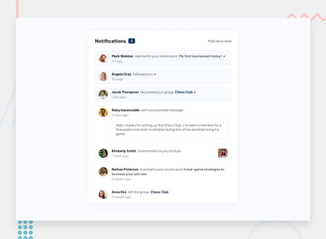 This project will be a brilliant test of your HTML, CSS, and basic JavaScript skills. You'll use JS to toggle the visual state of the notifications.