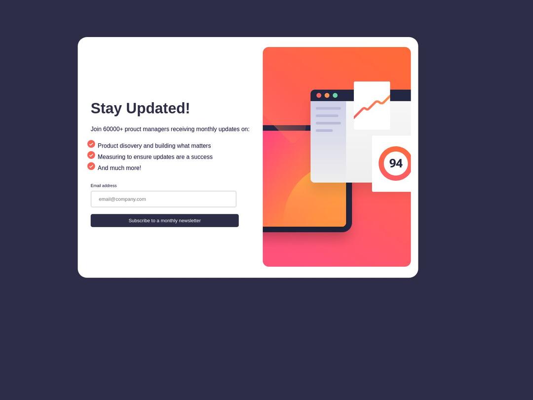 Submitted over 2 years agoA solution to the Newsletter sign-up form with success message challenge