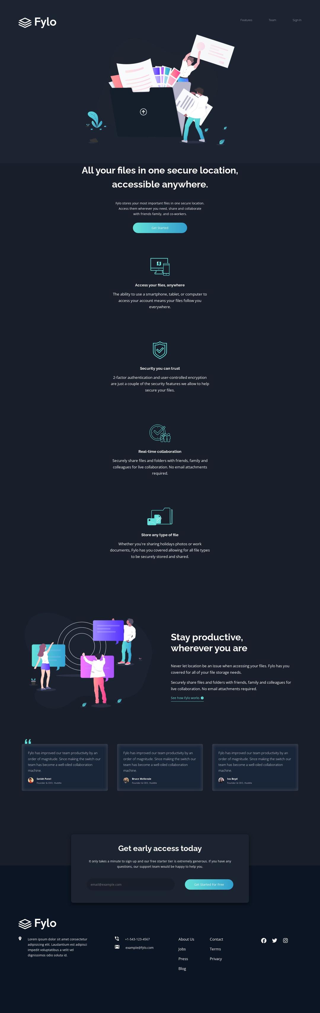 Animated Fylo Landing Page 🗃️🗃️ w/HTML, CSS, JS