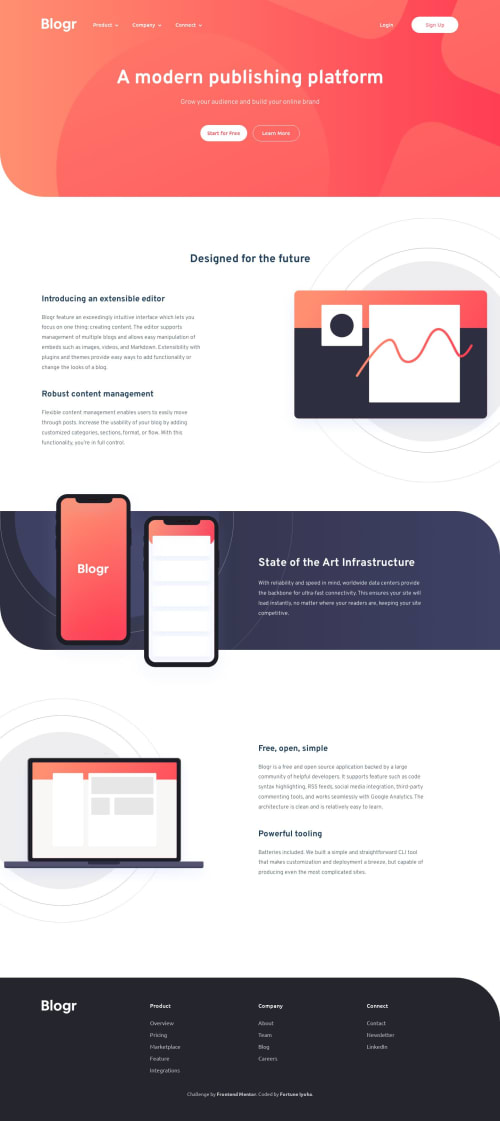 Submitted about 2 years agoA solution to the Blogr landing page challenge