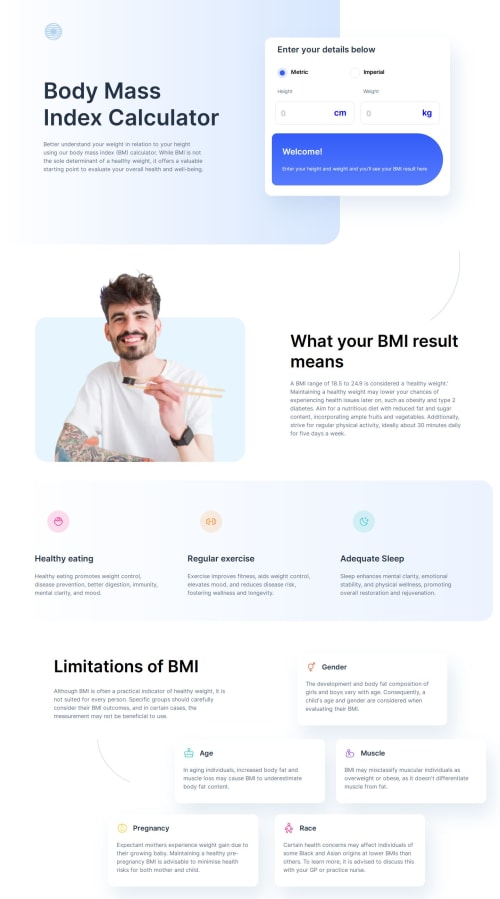 Submitted almost 2 years agoA solution to the Body Mass Index calculator challenge