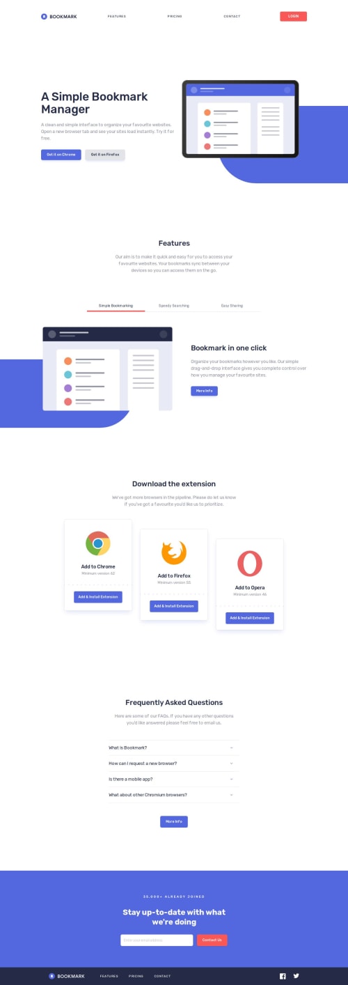 Submitted about 1 year agoA solution to the Bookmark landing page challenge