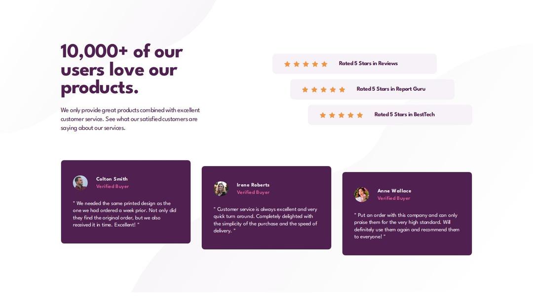 Would love feedback on my solution to the cascade layout of both the ratings and testimonials. Or any other feedback that would be helpful for me to consider and use to improve.