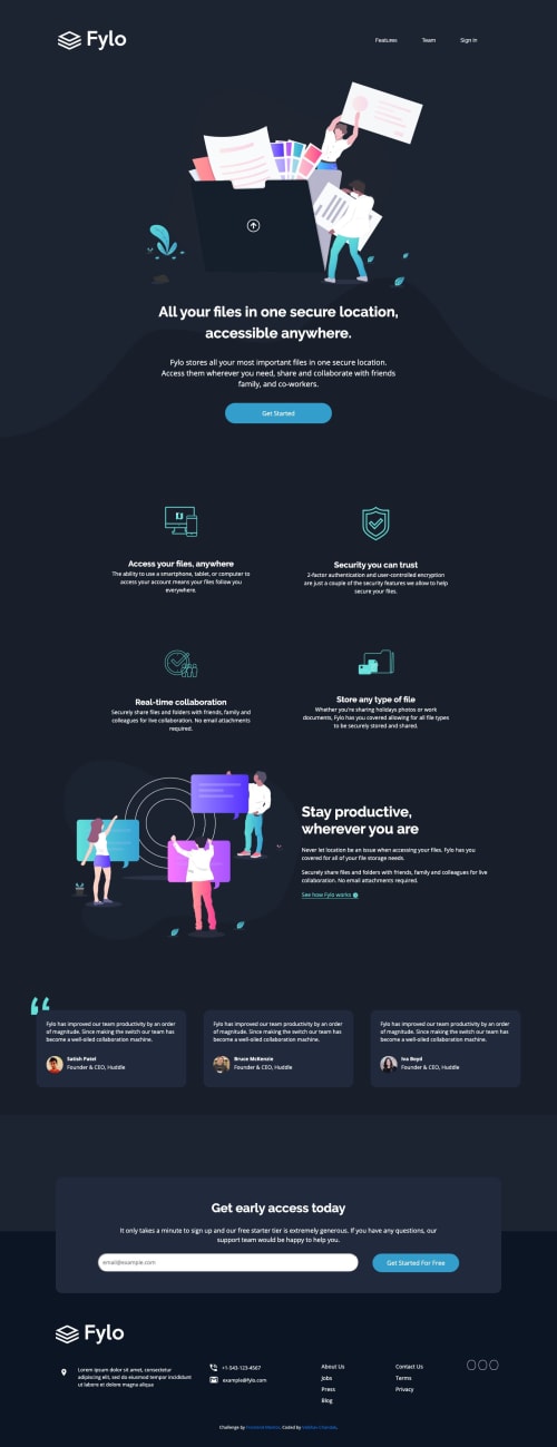 Submitted over 6 years agoA solution to the Fylo dark theme landing page challenge