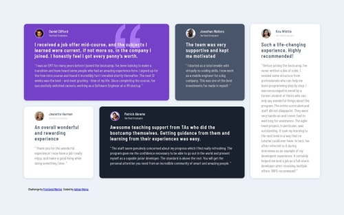 Join thousands of Frontend Mentor community members taking the challenges, sharing resources, helping each other, and chatting about all things front-end!