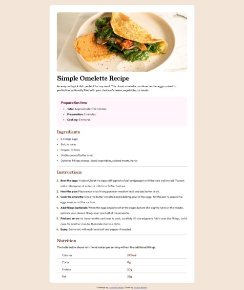 Submitted almost 2 years agoA solution to the Recipe page challenge