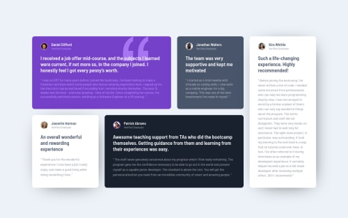 Submitted almost 3 years agoA solution to the Testimonials grid section challenge