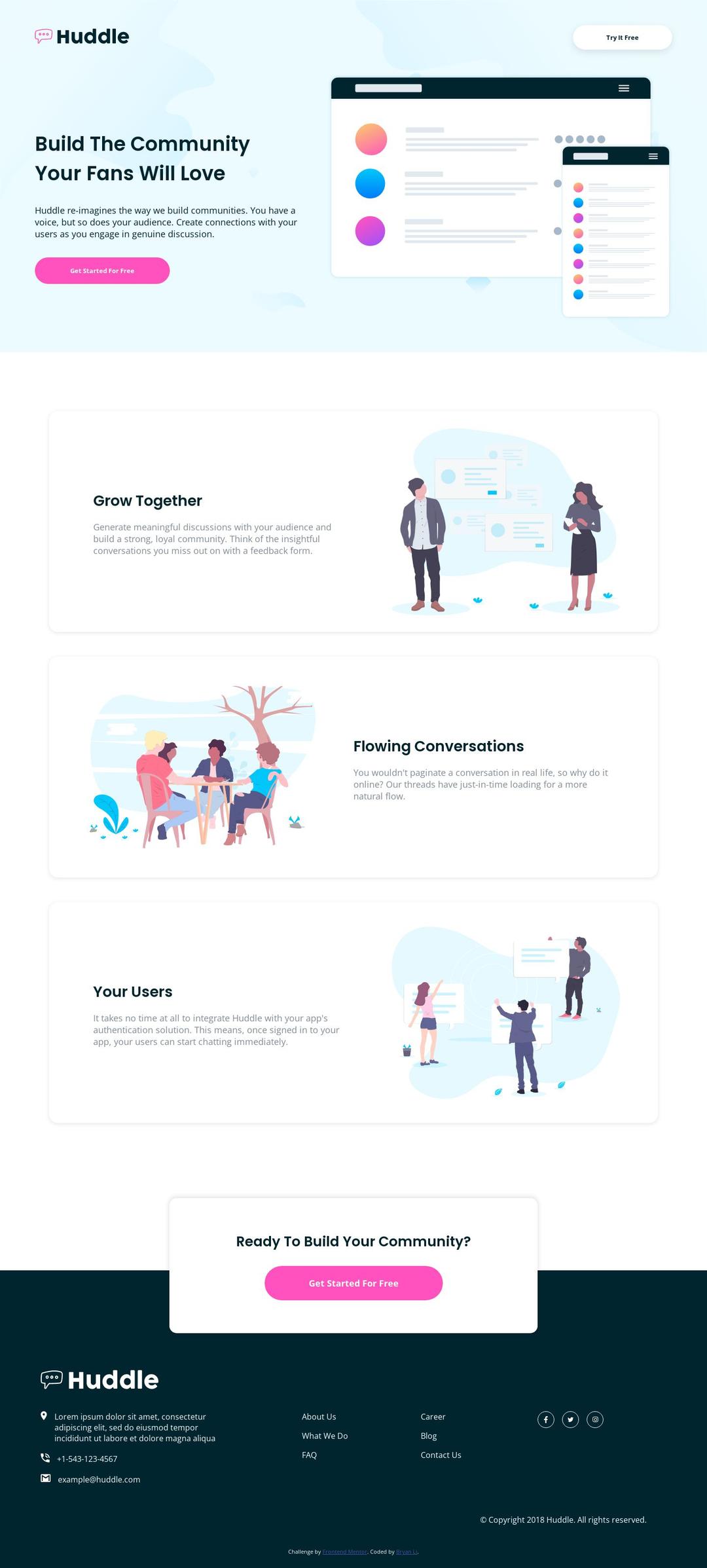 Submitted over 2 years agoA solution to the Huddle landing page with alternating feature blocks challenge