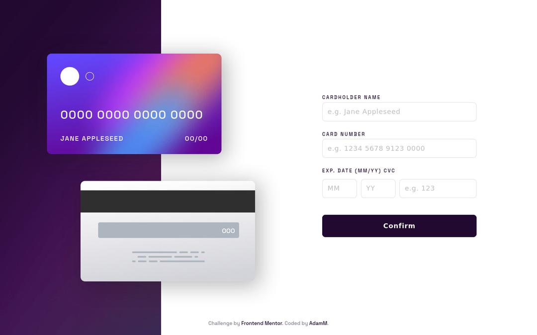 interactive card details JS html/css flexbox