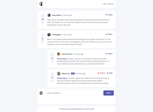 Submitted over 2 years agoA solution to the Interactive comments section challenge