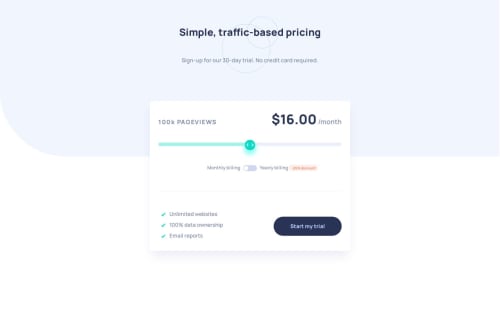 Interactive Pricing Component - Reactjs, Bootstrap, CSS, HMTL, Flexbox
