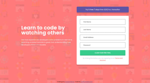 Submitted about 3 years agoA solution to the Intro component with sign-up form challenge