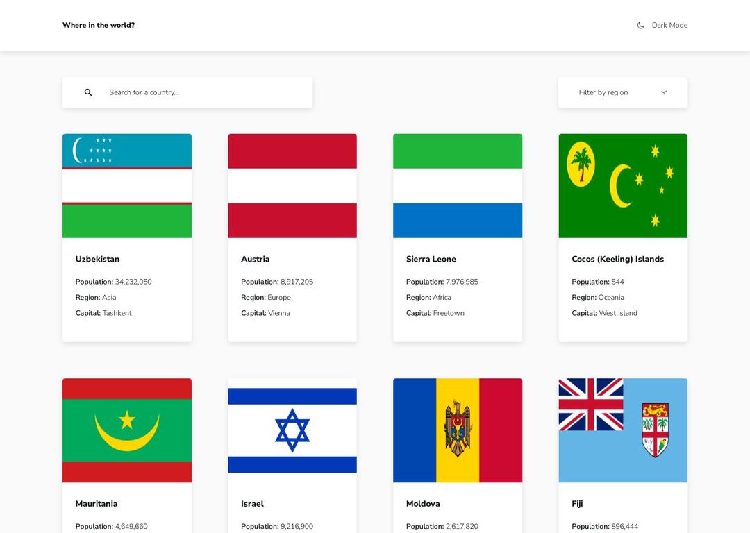 Submitted about 2 years agoA solution to the REST Countries API with color theme switcher challenge
