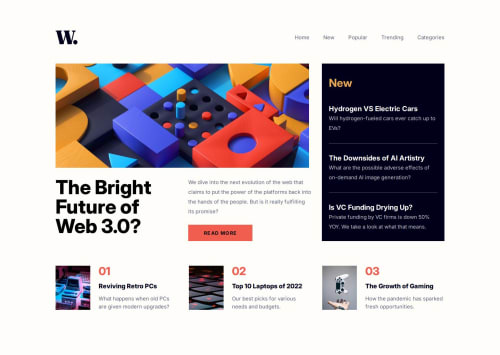 News homepage created with Tailwind CSS and JS