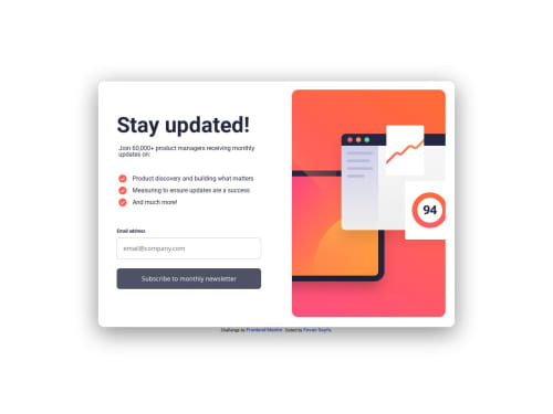 Submitted about 2 years agoA solution to the Newsletter sign-up form with success message challenge