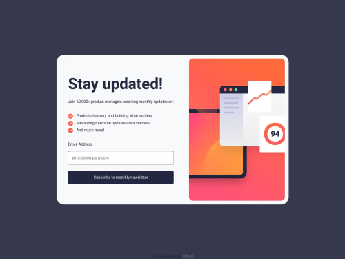 Submitted over 2 years agoA solution to the Newsletter sign-up form with success message challenge