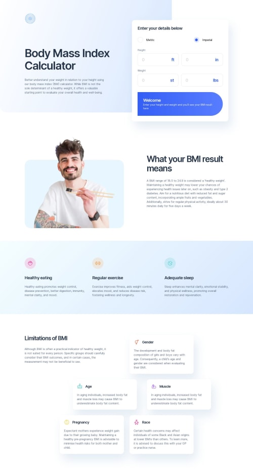 Submitted almost 3 years agoA solution to the Body Mass Index calculator challenge