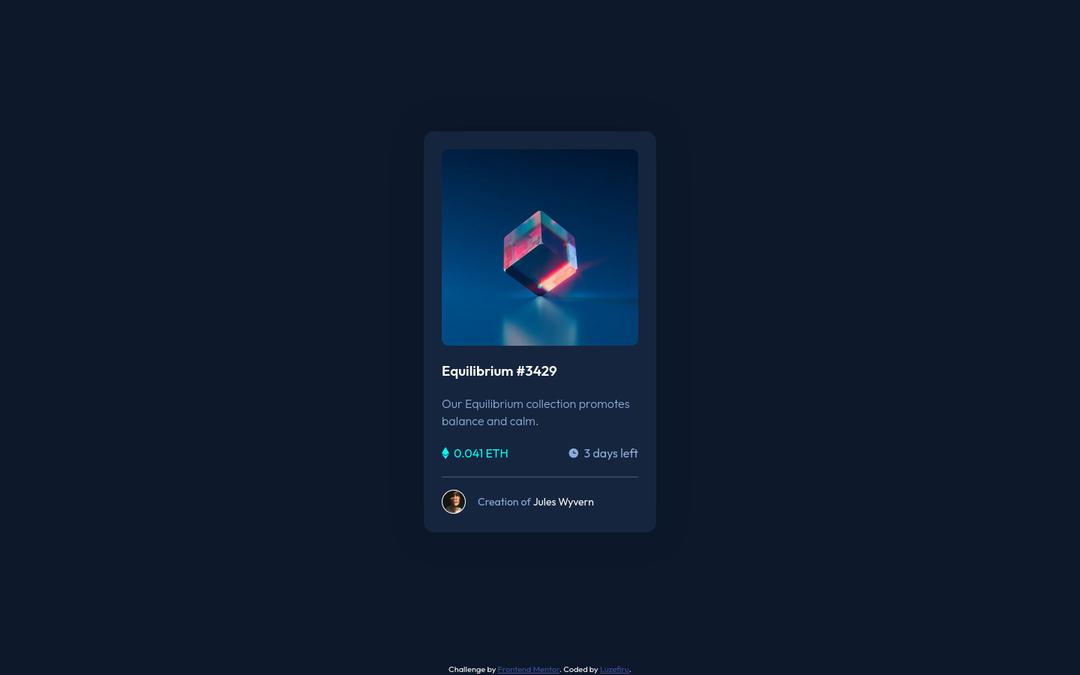Submitted almost 3 years agoA solution to the NFT preview card component challenge
