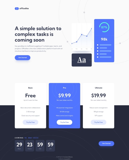 Submitted almost 2 years agoA solution to the Officelite coming soon site challenge
