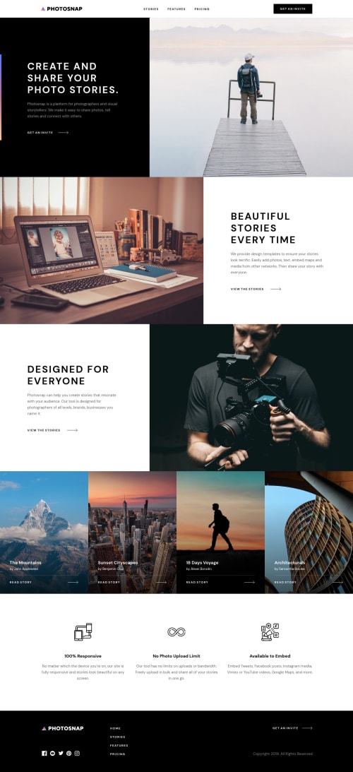 Submitted almost 5 years agoA solution to the Photosnap multi-page website challenge