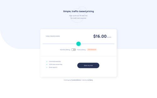 Pricing Slider Using HTML, CSS, and Vanilla Javascript.