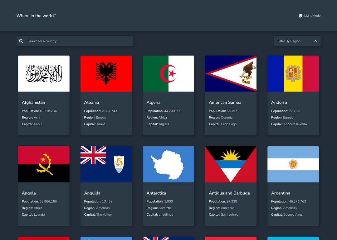 Responsive All Countries Rest API Built Using Vanilla JS, and Tailwind