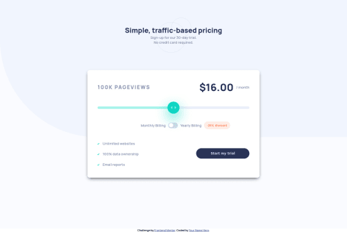 Responsive Interactive Pricing Component using CSS Grid, Flexbox, JS