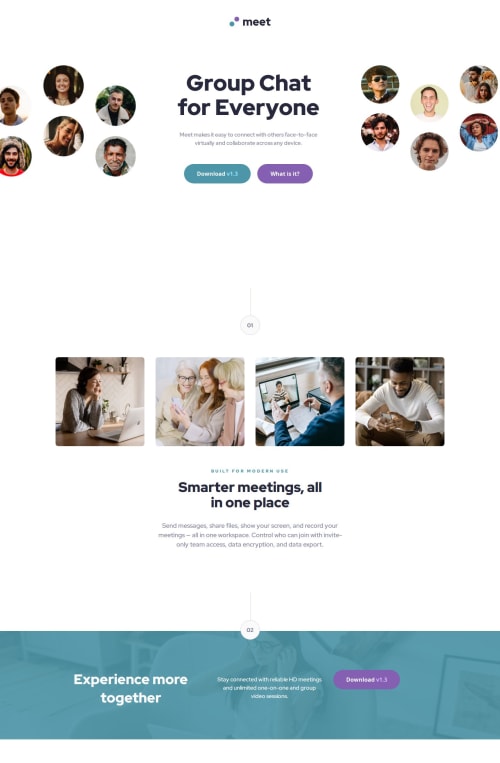 Submitted about 1 year agoA solution to the Meet landing page challenge