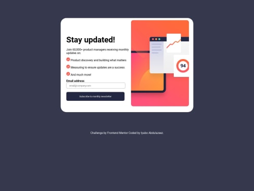 Submitted over 2 years agoA solution to the Newsletter sign-up form with success message challenge