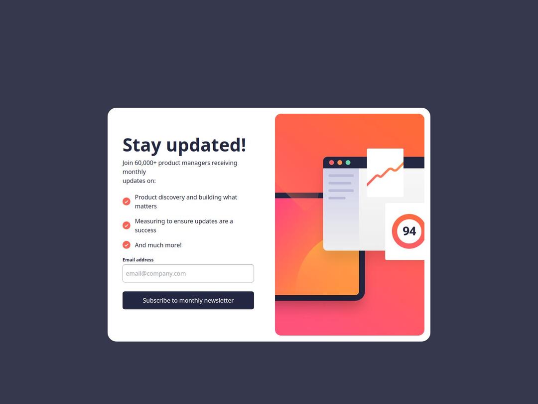 Submitted almost 2 years agoA solution to the Newsletter sign-up form with success message challenge