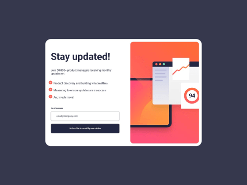Submitted over 2 years agoA solution to the Newsletter sign-up form with success message challenge