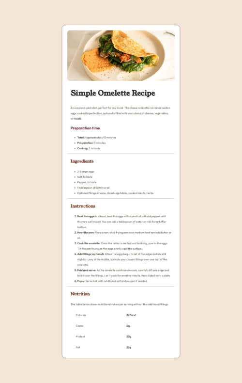 Responsive Omelette Recipe design using CSS flexbox and CSS grid