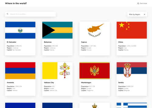 Submitted almost 4 years agoA solution to the REST Countries API with color theme switcher challenge