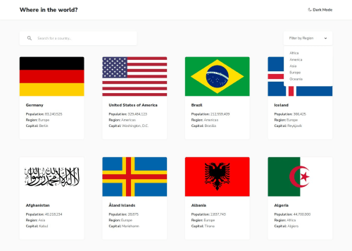 REST Countries API with themes using Angular, RxJs and TailwindCSS