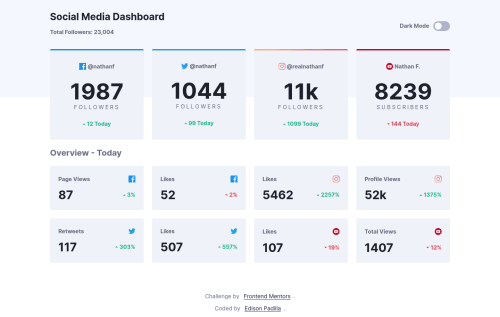 Submitted about 3 years agoA solution to the Social media dashboard with theme switcher challenge