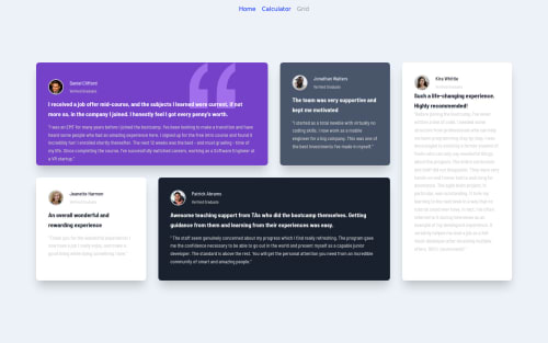Submitted almost 4 years agoA solution to the Testimonials grid section challenge