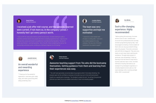 Submitted about 4 years agoA solution to the Testimonials grid section challenge