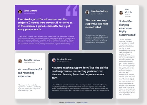 Submitted 4 months agoA solution to the Testimonials grid section challenge