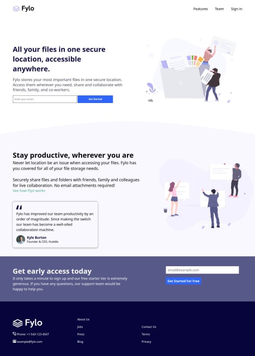 Submitted about 2 years agoA solution to the Fylo landing page with two column layout challenge