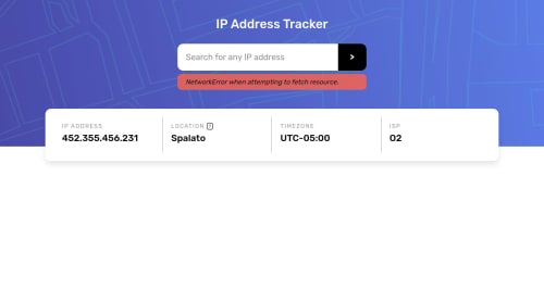 This is my, Vanilla JS solution to this challenge. I decided to use another IP Geolocation API (IPWHOIS.IO), that doesn't require and API key.