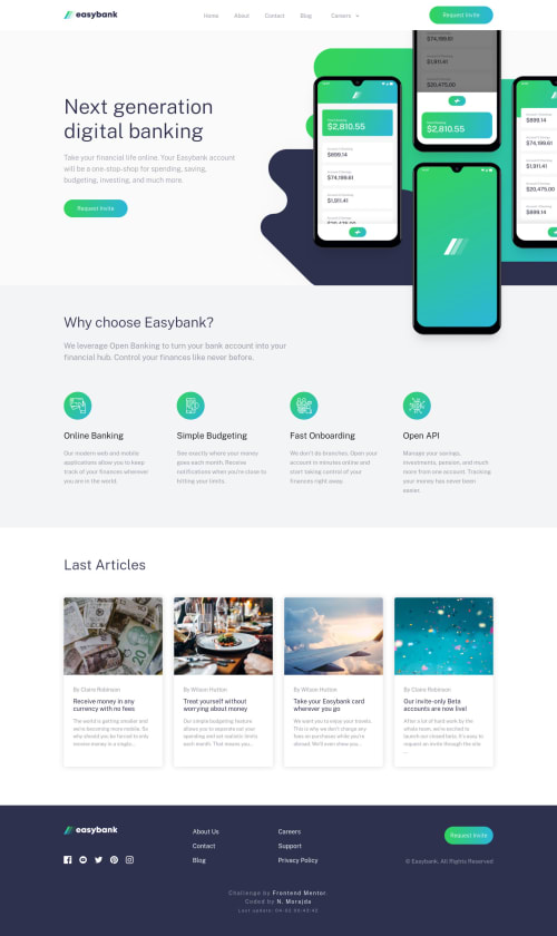 Submitted about 5 years agoA solution to the Digital bank landing page challenge
